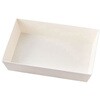 一体折の紙製品となります。フタが透明なので陳列にも適しており、ベーカリーや総菜、弁当に最適です。[品番]54629。