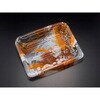 底上げされた、中身の詰まり感を演出できる流し盛の刺身容器。ラップ・フタどちらも使用できる2Wayタイプ。ラップ対応で定番品に。蓋を使用すると高質感を演出できます。紅葉を思わせる鮮やかな海洋オレンジは、味わい深い秋冬の売場を演出します。本体のみ、蓋は別売り。