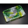 マグロ・寿司に最適。盤面の広さを保ちながらドリップが漏れにくく蓋が外れにくいスマート勘合。更に本体内側にある内壁効果でツマがはみ出にくいだけでなく盛付けた美しい状態を保ちます。赤身系を引き立てる緑柄。金箔を散らした重厚な深緑が、高級感を演出。