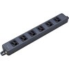 オフィスの新築、改修等、舞台や劇場等の損影現場に最適な黒タップ!。OAタップの外郭にエコのポリカーボネート樹脂を採用しています。この材料は臭素系の難燃剤を使用しておりませんので、難燃剤等に起因するガスの発生はほとんどありません。プラグ形状は「耐トラッキング接地プラグ付」と「ハーネスプラグ付」から選択できます。