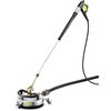 サーフェスクリーナー FR 50 Me。直径50cmの大型で、ステンレス製(Metal)のボディを持っているのが特徴です。泥水や汚染物質が周囲に激しく飛び散るのを防ぎ、広範囲をムラなく、素早く清掃できます。耐圧650bar(65MPa)。別途ノズルセットが必要です。