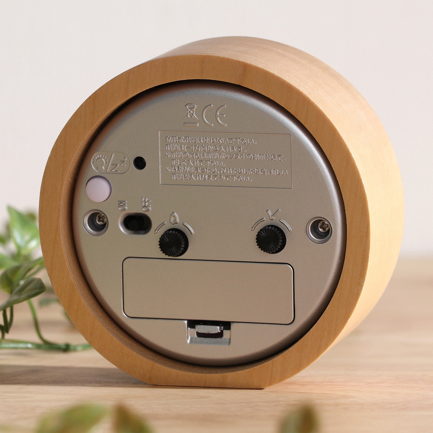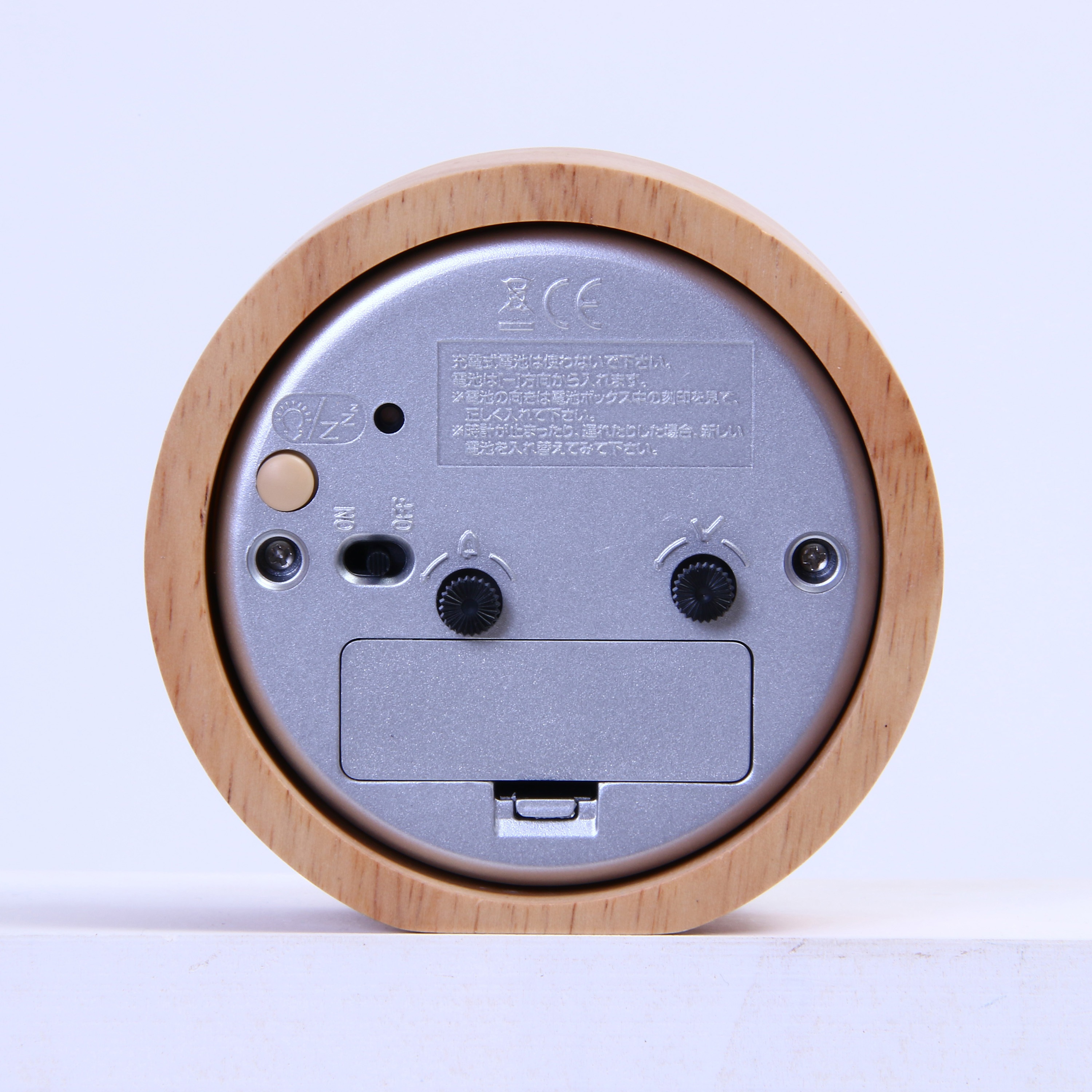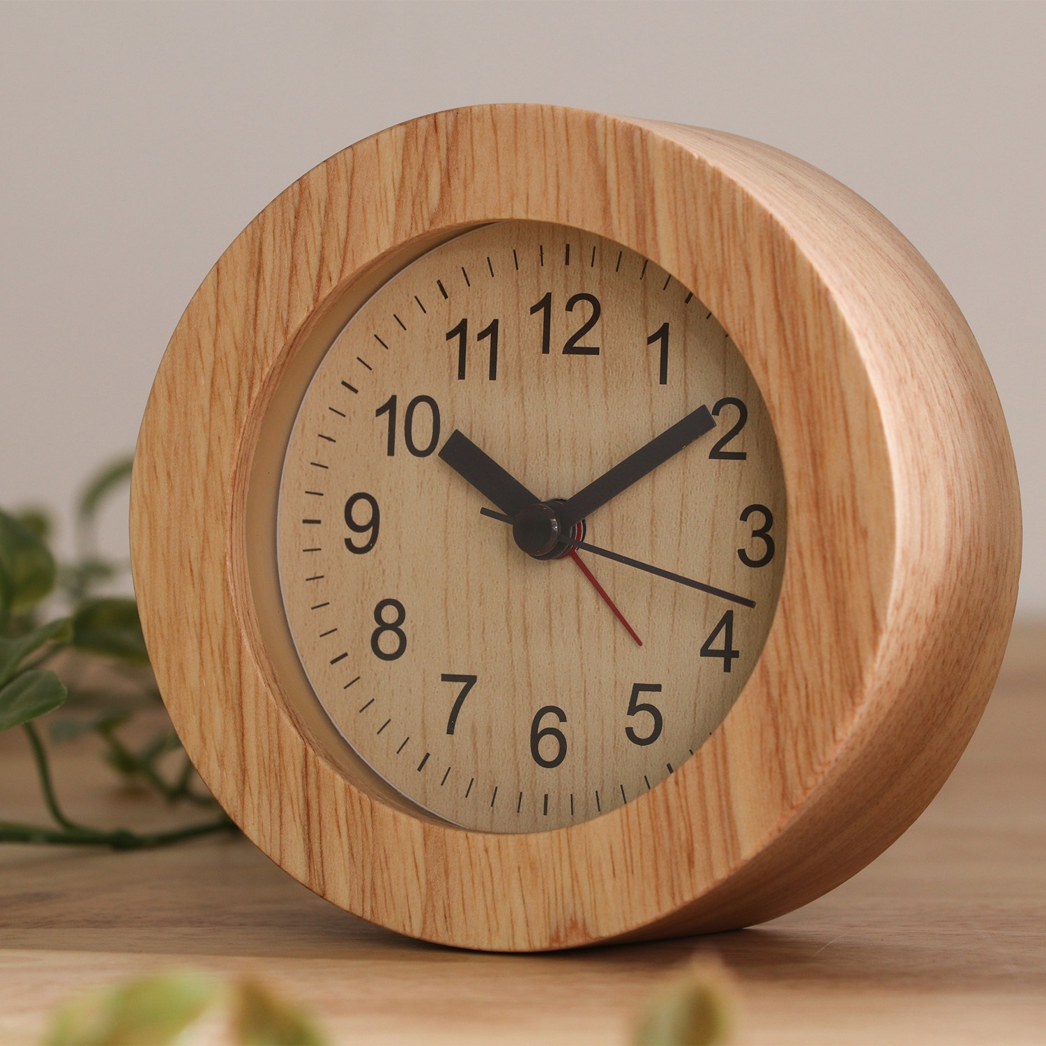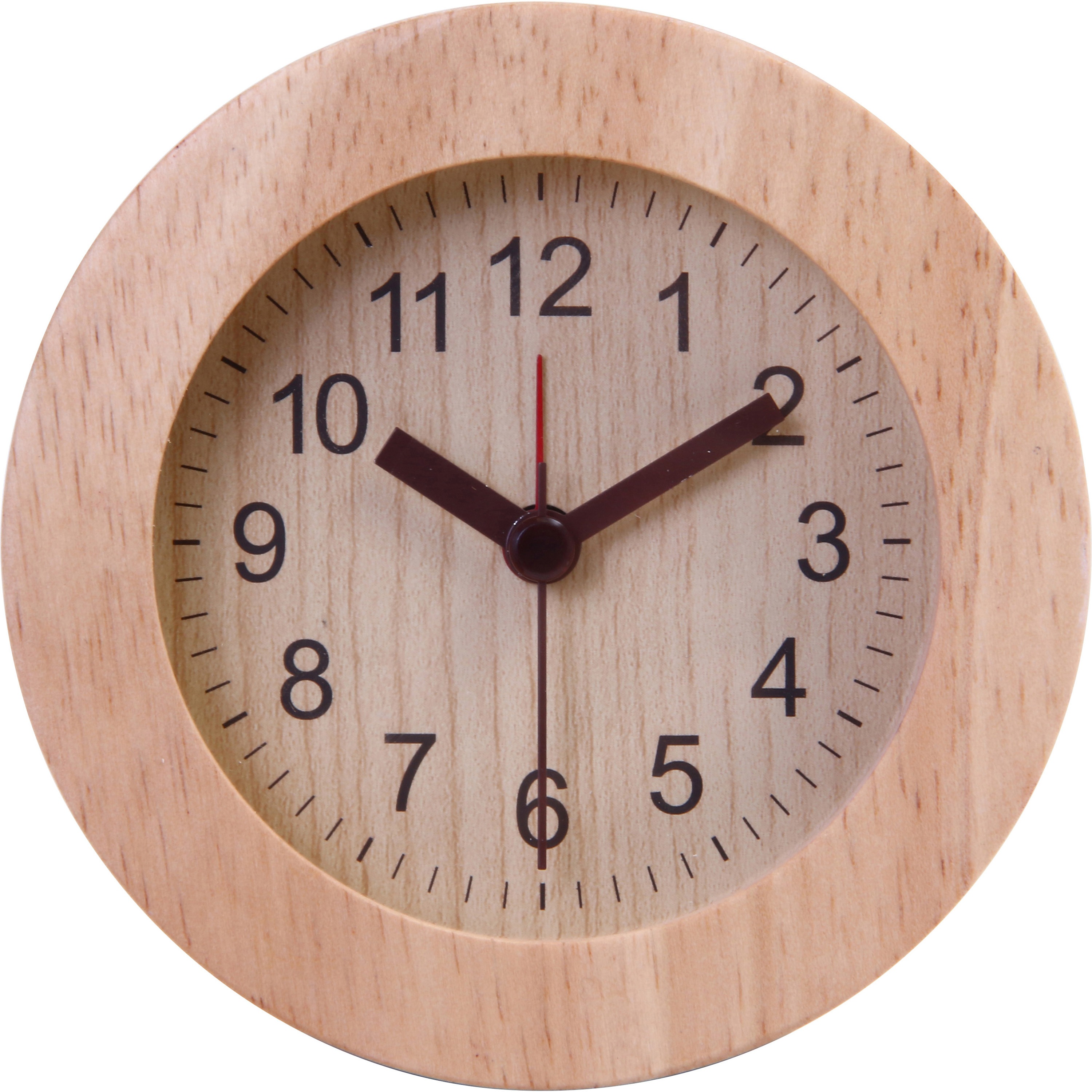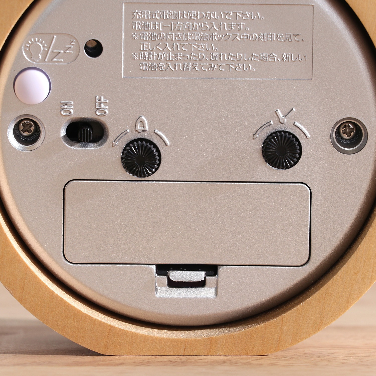 木目の優しいナチュラル置時計 天然木のフレームで、すっきりしたシンプルデザイン。長く使っていても飽きの来ないデザインです。 スイープムーブメントの秒針で音も静かです。 始めは優しく鳴り、4段階の変化をつけて音を届けます。背面のスイッチでアラームをオンオフできます。 背面のボタンでバックライトが光ります。暗い中でも時間の確認がカンタンに。 コンパクトサイズなので枕元だけでなく、デスクやサイドテーブルの上でも活躍します。 単三電池1本(別売)で動く、お手軽仕様。