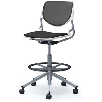 ルナ 5本脚ハイチェア 肘無 背メッシュ ホワイトシェル シルバーフレーム ナイロン双輪 オカムラ(岡村製作所)