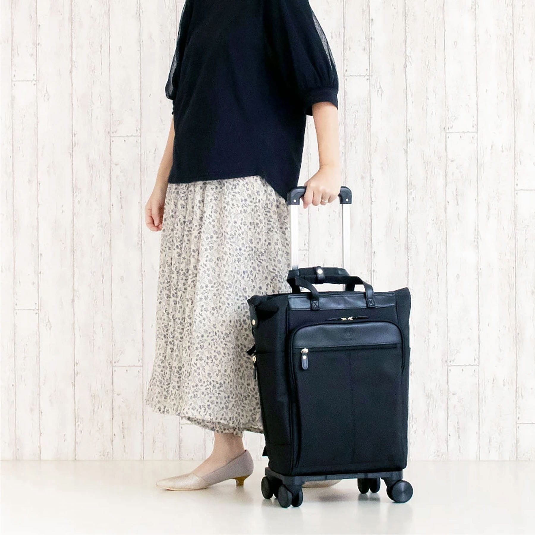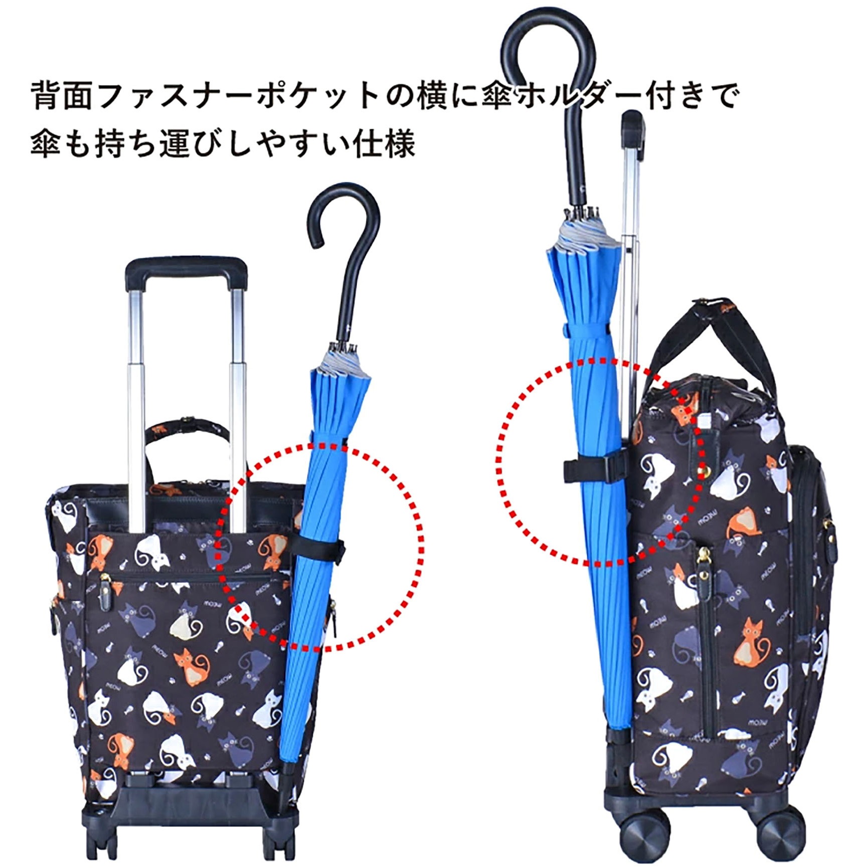 SAXON cue 2way ショッピングキャリーバッグ 5237 サクソンキューは、トートバッグにもキャリーにもなる2WAY仕様のショッピングキャリーバッグです。バッグ単体でも使用可能、キャリーは360°回転する大型双輪キャスターで横押し、走行もスムーズです。内装は保温・保冷仕様、2Lのペットボトルもしっかりと入ります。背面の傘ホルダーや前面・背面にもファスナーポケット付きです。側面のオープンポケットはファスナーを開けるとマチが拡張します。キャリーのハンドルは三段階で調整が可能です。