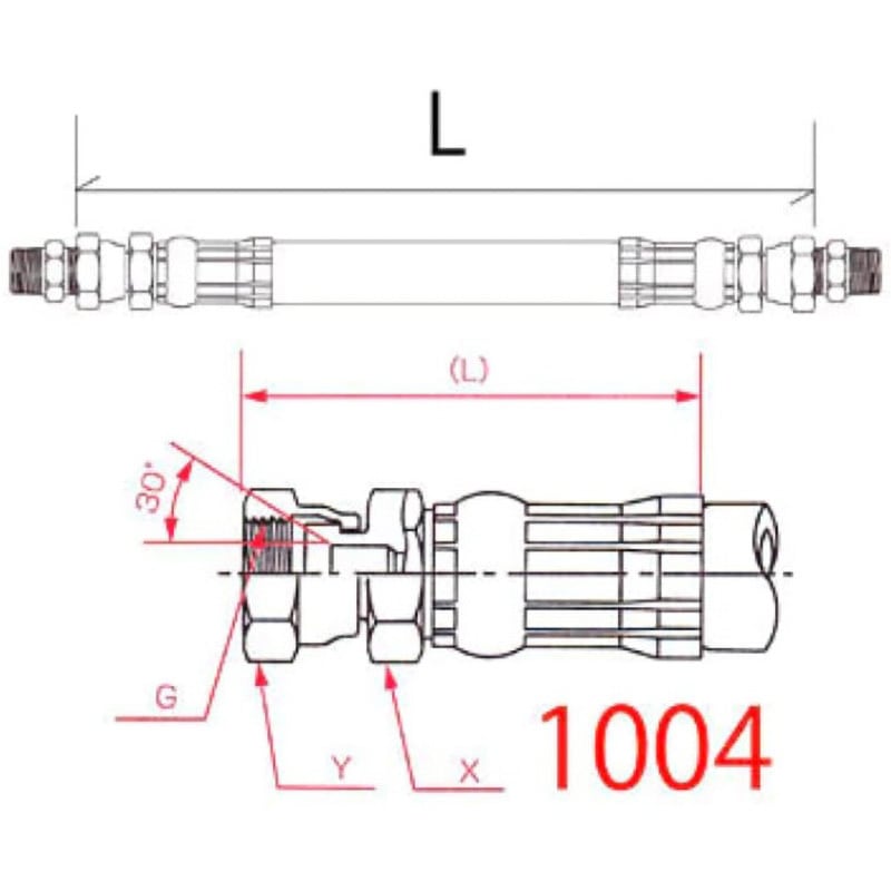 規格【金具】G1/2管用平行メスねじ(メス30°シート)、【アダプタ】G1/2オス30°シート(金具1004接続側)×R1/2