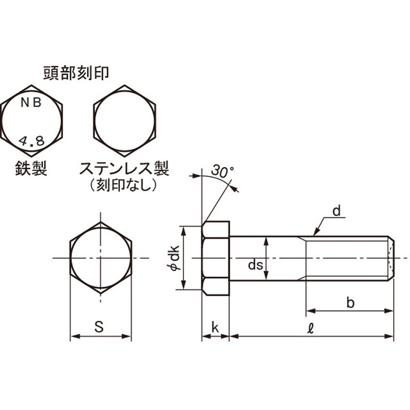 強度区分8.8六角ボルト(鉄/ユニクロ)(小箱)
