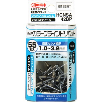 ブラインドリベットのツバをカラーにしてありますので、塗装の必要がなく、仕上がりもスマートです。ブラインドリベットは片側から複数の母材をワン・アクションで締結できます。ツバのカラーをブラックにしてあるので塗装の必要がありません。