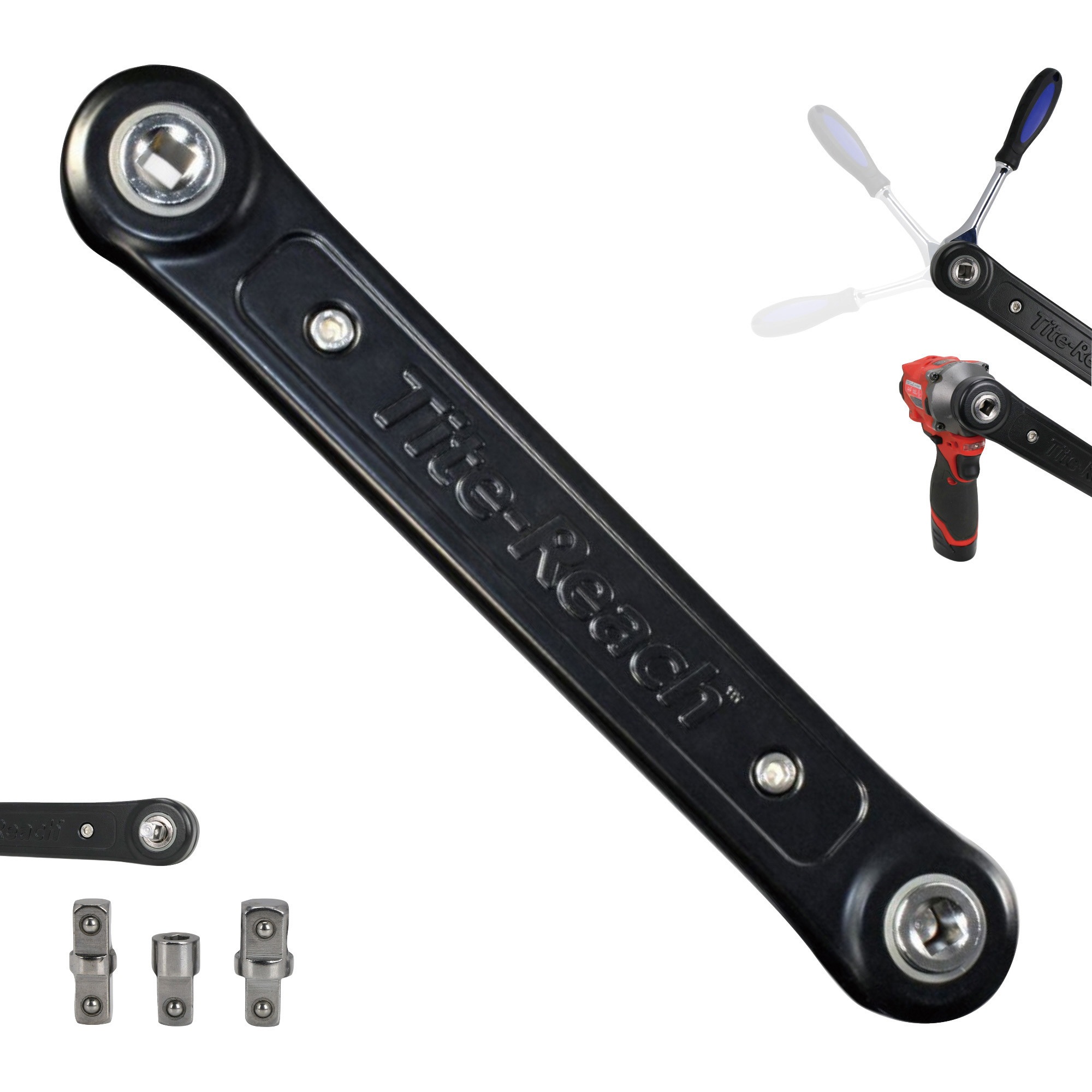 付属品:3/8" プロエクステンションレンチ、3/8" - 3/8" アダプター、3/8" ビットアダプター、3/8" - 1/2" アダプター。農場や作業現場での毎日の使用に耐えられるように設計されています。自分のソケットやソケットレンチと組み合わせて使用できます。どちらの面でも使用できる多用途な設計です。10インチの延長機能で作業がしやすく、時間と手のひらを守ります。インパクトドライバーと組み合わせることで、作業をさらに効率よく行えます。