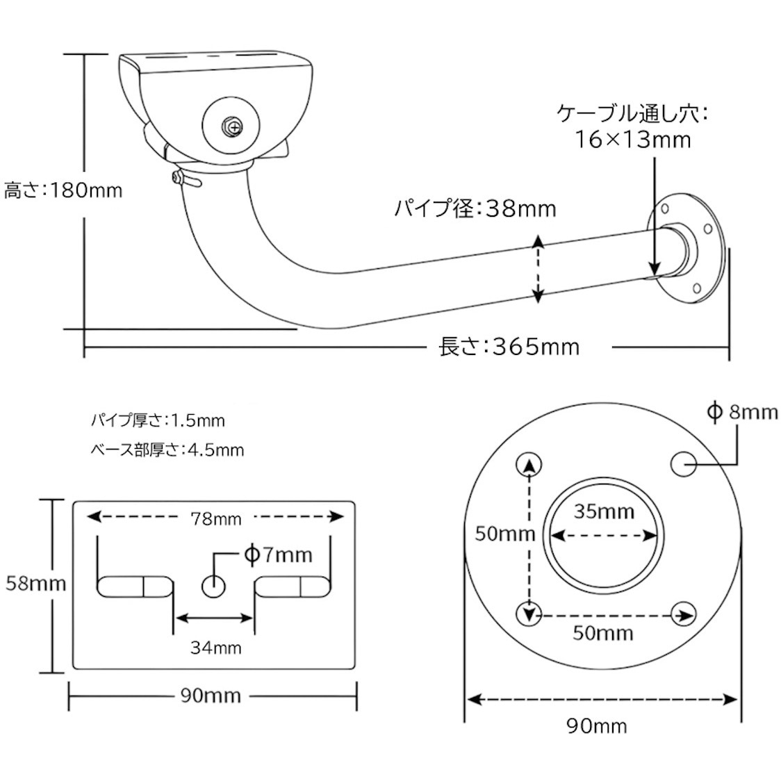 ※設置の際は作業環境をご確認の上、取付を行ってください。基本壁は、カメラとブラケットの総商品重量の3倍以上の商品重量を支えられる必要があります。