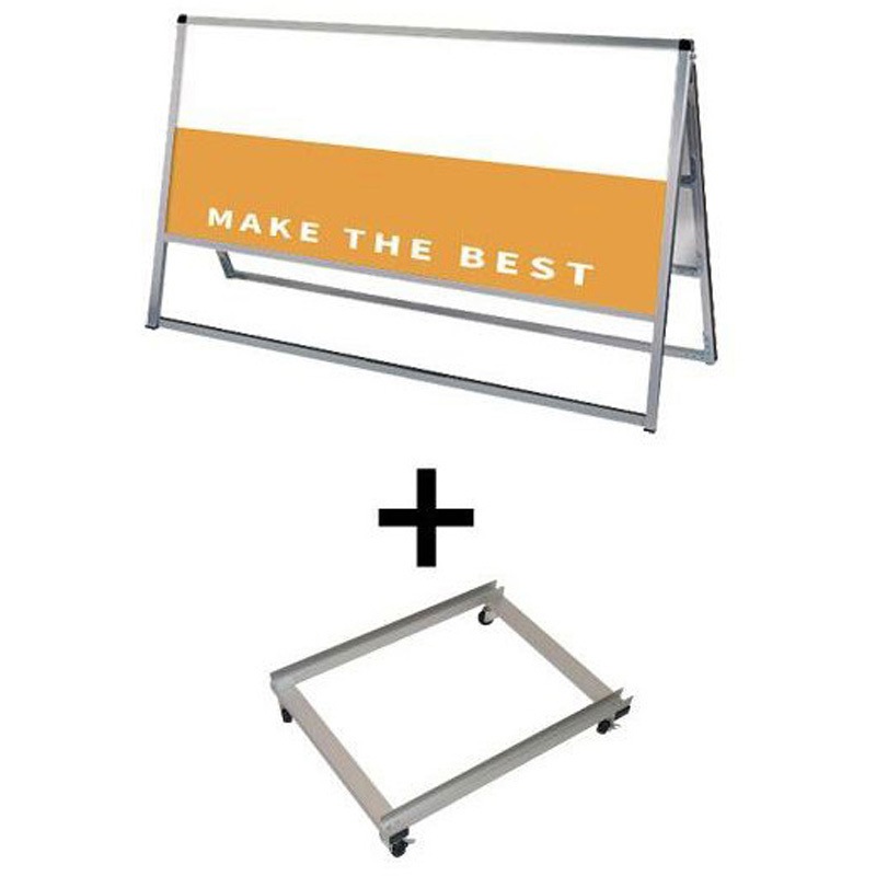 インクジェットシートを貼り付けて使用する屋外対応のアルミ製A型スタンド看板 +アームキャスターセット