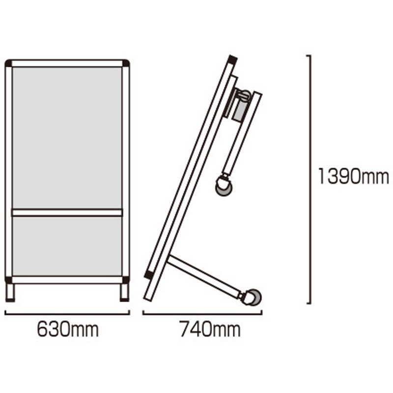 フレーム=アルミ押出し材/アルマイト仕上(ブラック)、マーカーボード(ブラック)3mm厚、塩ビケース(透明)A4縦/2列(仕切板はスライド式)2mm厚