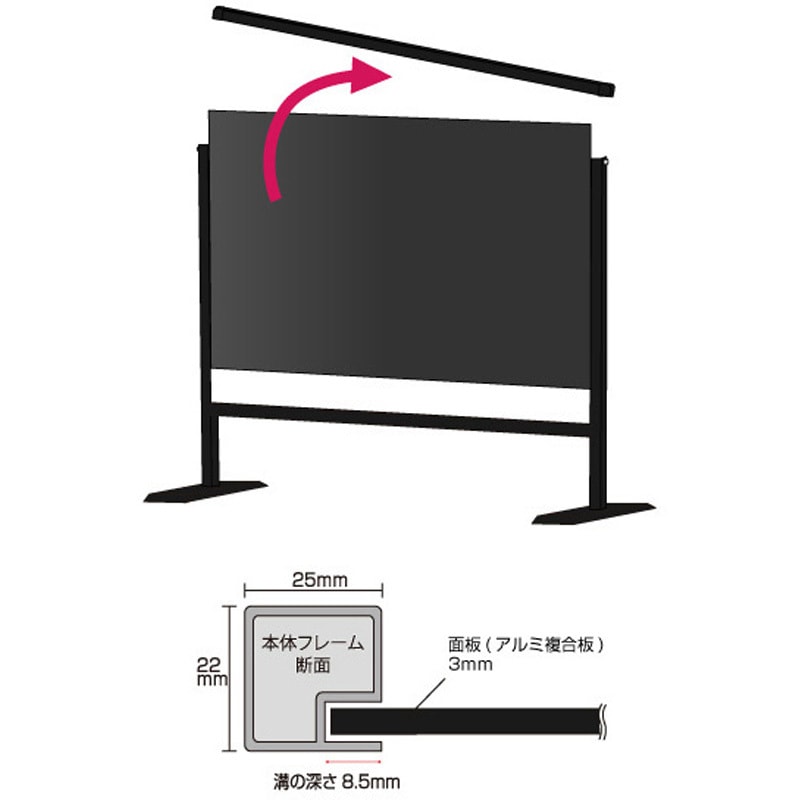 材質フレーム/ベース=アルミ押し出し材/アルマイト仕上げ(ブラック)、脚部=材質:スチール鋼鈑(SPHC) (1個0.18kg) 表面処理:焼付け塗装(ブラック)、 面板= アルミ複合板(黒)3mm厚