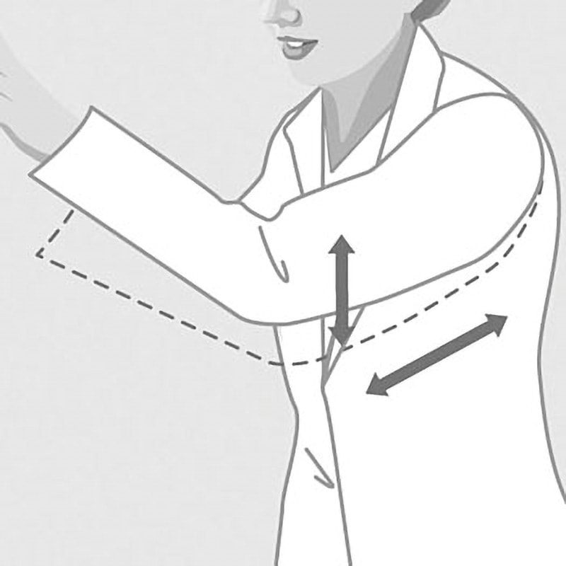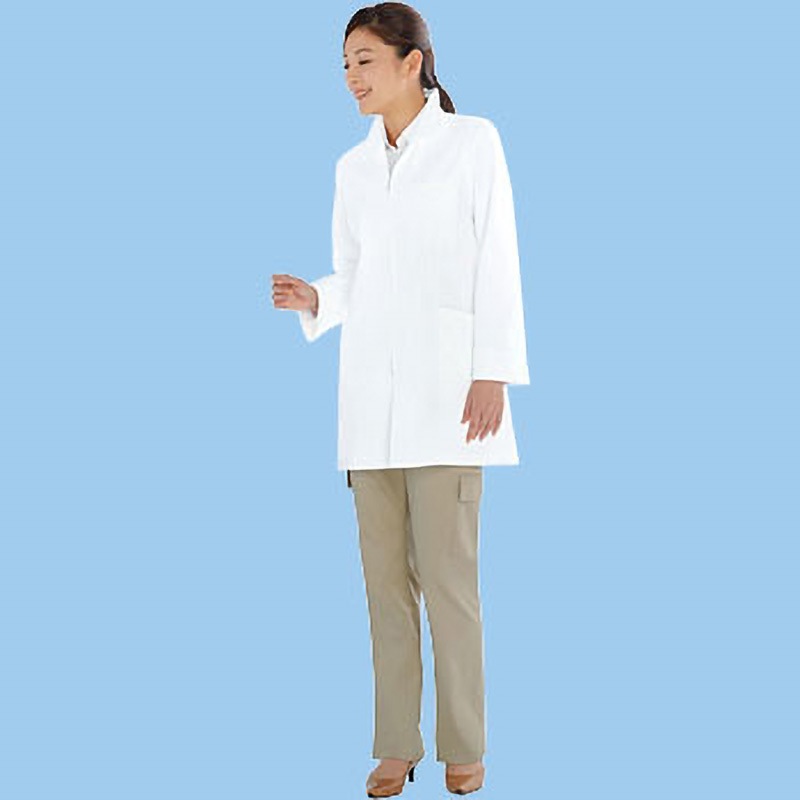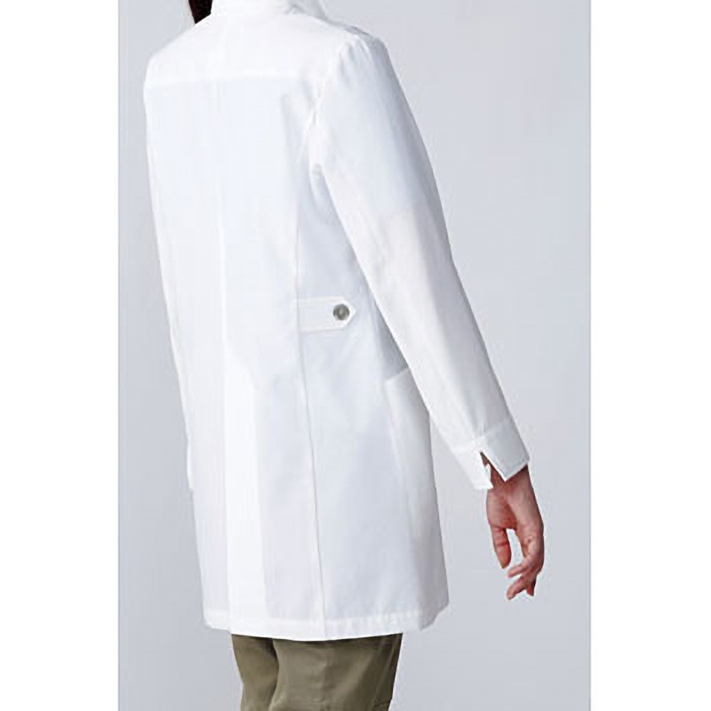 業界初のジップアップハーフ丈診察衣 折り返したり、たくし上げたりが可能なスリット入りの袖口。 ファスナーをしめたままも、適度なストレッチが腕の上下や前後運動に伴う突っ張り感を軽減します。 後ろ脇タグ付で、ウエストを適度にシェイプします。 右腰ポケットに内ポケット付、双方向ファスナー開き、フロントファスナー衿元止め