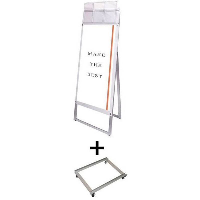 ポスターをより簡単に交換できるA4三つ折りパンフレット用ケースが付いたスタンド看板+アームキャスターセット