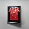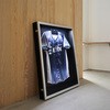 LED照明を額縁の中に設置した製品です。前開き式のLEDユニフォーム額です。開閉式なので、ユニフォームの掛け替えが前面からできます。ハンガーも首から通すだけの簡単設置です。2mの電源コードが付属しています。スタジアムや店舗の演出バリエーションを増やせます。