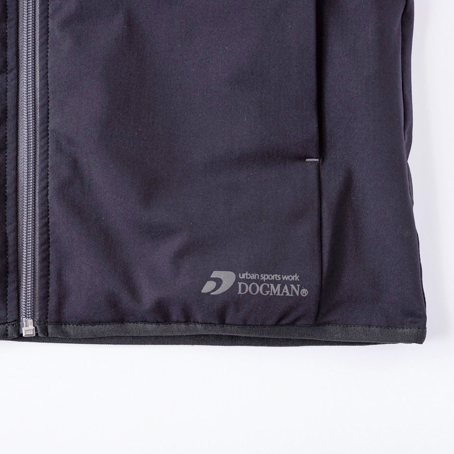 左裏に接続ケーブルが出たバッテリー収納用の内ポケットがあります。裾は暖かさを逃さないストレッチパイプ仕様です。