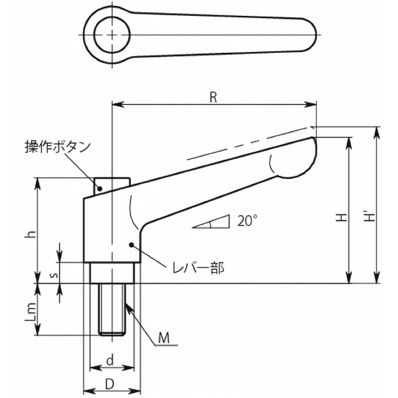 LDM クランプレバー(おねじ) - 操作ボタンつき