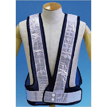 高輝度LED(突起型)の使用により視認性が高い。60mm幅の高輝度反射シートで夜間作業も安心。電池寿命は、単3電池2本で連続点灯時間約72時間(アルカリ電池を使用した場合)。マジックテープ脱着式でサイズ調節も簡単。