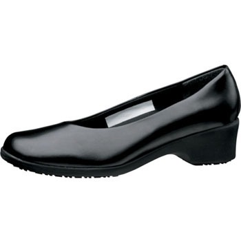 水や油で滑りやすい床面での作業に適したハイグリップソールです。女性の足にフィットしやすい設計になっています。接客サービス業にもご使用いただける、パンプスデザインです。内側の素材とインソールに消臭加工(オーダーレス加工)を施し、脱いだ時の気になる臭いを抑えます。抗菌・防臭加工のインソールを使用しています。