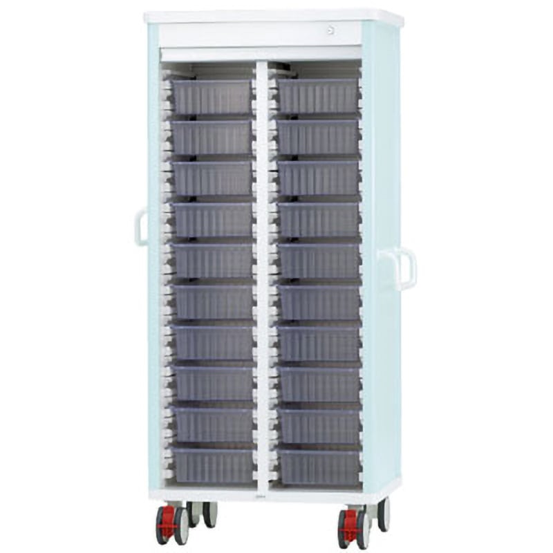 注射薬の搬送で普及しているミキシングトレー専用カート。衛生面とセキュリティ面を両立したシャッター鍵付きタイプ。1患者1トレーというスタイルで注射薬を管理できます。