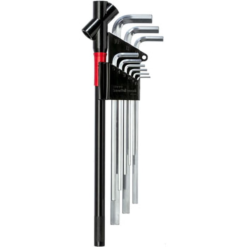 最高品質の六角棒レンチです。1.5~10mm最高品質の硬質クロームメッキ処理 絶対錆びない電着塗装ハンドル付。 本締めOK!トリプルハンドル どんな狭い所でも最大級のトルクを生み出す「トリプルハンドル」は、使い易い5通りの角度でハンドル操作ができます。 A穴・B穴を交互に差し換えると360°回せます。