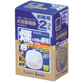 付属品取付ネジ×2本、石こうくぎ×3本、取付板×1個、引きひも×1本、取扱説明書(保証書付)種別光電式住宅用防災感知器色ホワイトアイボリー質量(g)約110(電池含む)使用温度範囲(℃)0~40(結露しないこと)外形寸法(mm)100×100×41.5(引掛けフックを除く)電源リチウム一次電池(定格:3V、1600mAh)×1本機能電池が少なくなると光と音でお知らせ、自動試験機能で故障と判断した際に光を音でお知らせ電池寿命約10年動作表示灯テストボタン内側、火災時:点滅(0.5秒点灯、0.5秒消灯の繰り返し)鑑定型式番号鑑住第19~77号警報機能停止:テストボタンと兼用、警報停止保持時間/約14分間(14分経過後も警報状態継続中の場合は再鳴動)警報音・音量ブザー警報「ピー ピー ピー」・70dB以上(メーカー測定値:最大90dB)試験機能煙・熱感知部の故障を検出し、動作表示灯の点滅と警報音の鳴動を行う感知方式火災:光電式(散乱光方式)