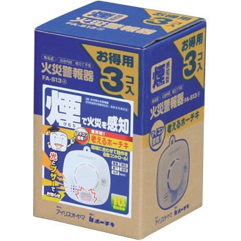 付属品取付ネジ×2本、石こうくぎ×3本、取付板×1個、引きひも×1本、取扱説明書(保証書付)種別光電式住宅用防災感知器色ホワイトアイボリー質量(g)約110(電池含む)使用温度範囲(℃)0~40(結露しないこと)外形寸法(mm)100×100×41.5(引掛けフックを除く)電源リチウム一次電池(定格:3V、1600mAh)×1本機能電池が少なくなると光と音でお知らせ、自動試験機能で故障と判断した際に光を音でお知らせ電池寿命約10年動作表示灯テストボタン内側、火災時:点滅(0.5秒点灯、0.5秒消灯の繰り返し)鑑定型式番号鑑住第19~77号警報機能停止:テストボタンと兼用、警報停止保持時間/約14分間(14分経過後も警報状態継続中の場合は再鳴動)警報音・音量ブザー警報「ピー ピー ピー」・70dB以上(メーカー測定値:最大90dB)試験機能煙・熱感知部の故障を検出し、動作表示灯の点滅と警報音の鳴動を行う感知方式火災:光電式(散乱光方式)