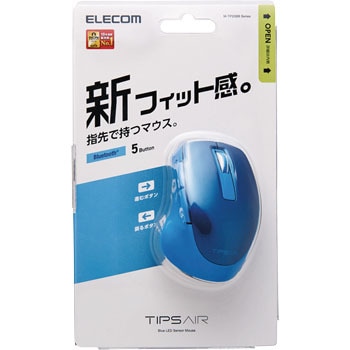 指先で持つ、新しいフィット感。 USBポートを使わずに接続できるBluetooth(R)対応で、指先操作を極めた「進む」・「戻る」ボタン付きの5ボタンBlueLEDマウス”TIPS AIR(ティップス エアー)”。