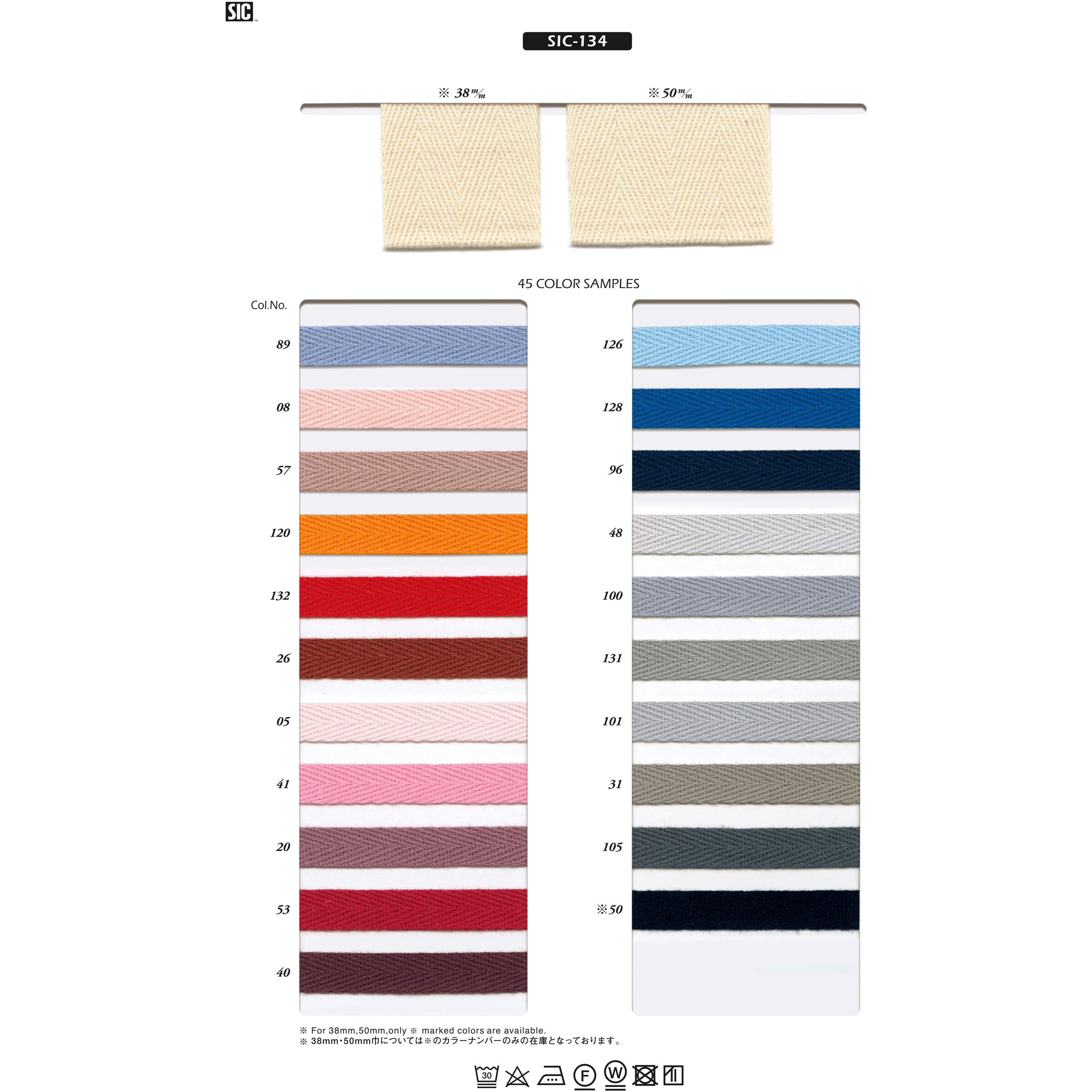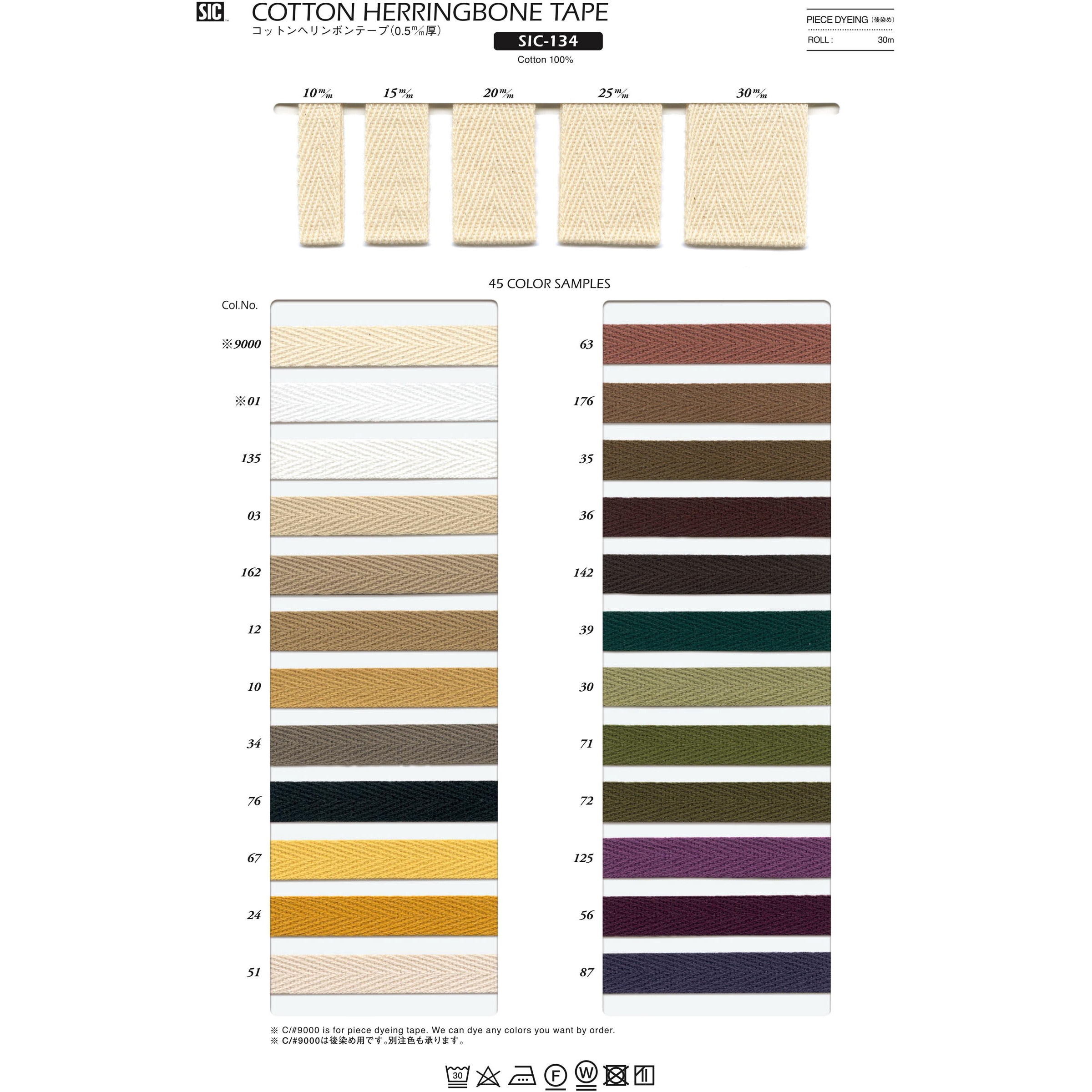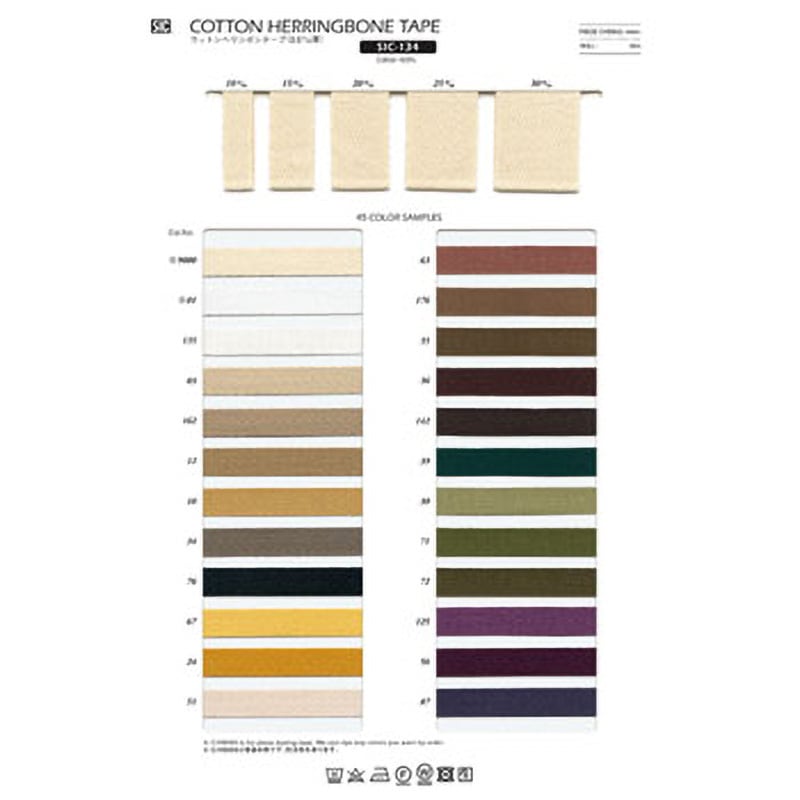 7サイズ×45色 中厚手の綿100%の杉綾テープです。 フード紐や、パンツの裾絞り、またカバンの持ち手などにおすすめのリボンです。 #9000は後染め用の為、仕上げ処理をしていません。