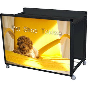 ポスターを展示できるパネルが着いたキャスター付催事用ワゴン対面・島・口の字・コの字等自由自在なワゴンレイアウトが可能専用パネルは着脱式で簡単に取り外しできますパネル部分のポスター交換は上から抜き差しするだけでとても簡単六角レンチ1本で簡単に組立・分解ができます安定感抜群で頑丈な純日本製