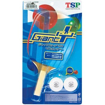 ラバー貼りラケット(ラバーは赤の裏ソフト)です。プラスチックボール2個付き