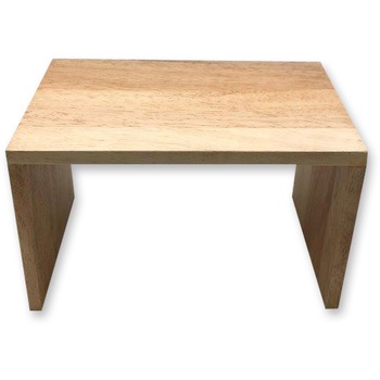 ゴムの木から樹液を採取した後の廃棄してしまう木材を加工して作っています。商品ディスプレイの際に高さ付けや、小物の飾り棚にしたりと便利に使えます。木目を活かしたシンプルなデザインでナチュラルな売場やインテリアによく合います。逆さにして小さな本棚や収納に使うこともできます。