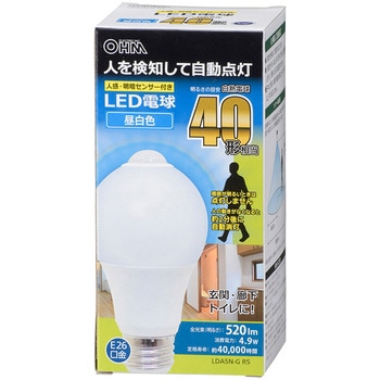 センサー無しの60w相当から交換したが、やや暗い印象。先端にセンサーがあるのでその部分が遮っているのかな?常時点灯の必要がない所なのでスイッチ操作の手間が省けたのは良い。ダウンライトで位地がやや凹んでいる分鈍いが、ソケットで天井とツライチにすれば良くなりそう。