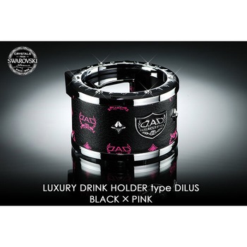 天面部にあしらわれたスワロフスキー(R)・クリスタルのまばゆい輝きが高級感を演出します。250/350mLどちらのサイズの缶もホールドし、走行時の転倒を防ぎます。底面にクッションマットを配することで振動による音鳴りを抑えます。専用アタッチメントによりエアコン吹き出し口へ簡単に装着できます。