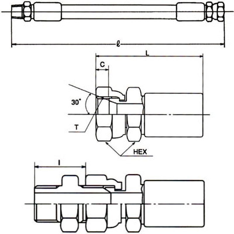 ハイドロリックホース K-210-09(両端金具05+アダプタ付)
