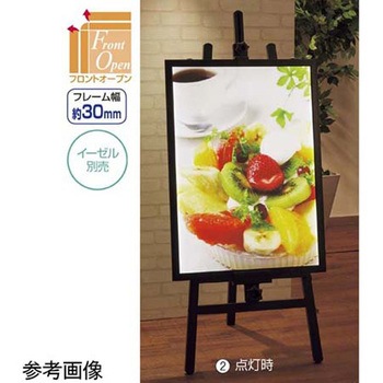 ●セット内容:パネル本体・ACアダプター・壁面取付用ネジ・アンカー×各4本●素材:フレーム/アルミ22mm厚、前面カバー/アクリル板1.5mm厚●サイズ:外寸/76.7×106.9cm、コード長/約2.6m●重量:7.8kg●アダプター付き 照度:約4000lx●画像の使用例はA1タイプです。●イーゼル別売(B1タテに対応するイーゼルをお使いください)●防滴仕様は61-780-95シリーズになります。