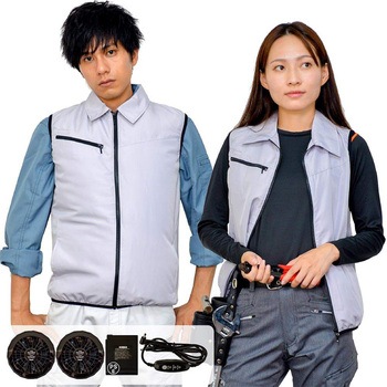 素材に高密度ポリエステルを採用し、気密性を高めたカジュアルな着心地の空調ベスト(ユニセックス仕様)です。背中には保冷剤(0911)を入れられるメッシュポケットを配して機能性を高めています。空調セットには安心のPSEマーク認証Panasonicセル内蔵バッテリー、空調ファンのモーターには世界No.1シェアである日本メーカー製を採用し「強風」のまま約9時間以上稼働します。リモコン付きケーブルなのでかんたんに操作できます。ネイビーとシルバーには6Lと7Lのビッグサイズを新規にご用意しました。