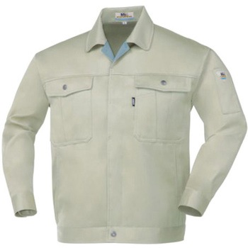 無地カラーのシンプルなデザインに、衿元からのぞく別カラーがワンポイントのアクセントとなっています。大きな胸ポケットや袖のペン差しのほか、内ポケットには便利なファスナーポケットも付いています。用途:作業全般
