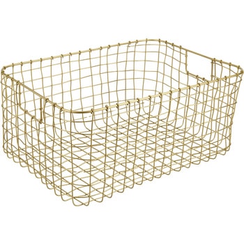 まるで真鍮のような質感のアイアンワイヤーバスケット。シンプルなデザインでリビングやキッチン、ランドリーやお庭など、場所を選ばず幅広いシーンでお使いいただけます。