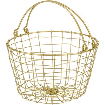 まるで真鍮のような質感のアイアンワイヤーバスケット。シンプルなデザインでリビングやキッチン、ランドリーやお庭など、場所を選ばず幅広いシーンでお使いいただけます。