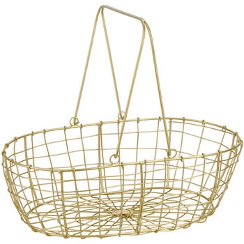 まるで真鍮のような質感のアイアンワイヤーバスケット。シンプルなデザインでリビングやキッチン、ランドリーやお庭など、場所を選ばず幅広いシーンでお使いいただけます。