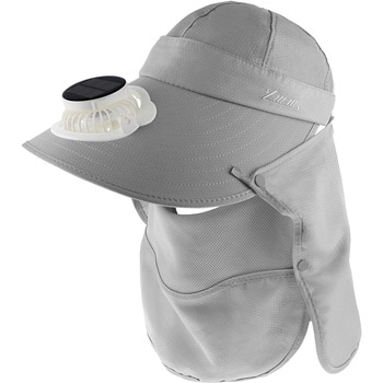 付属品充電ケーブル×1(USB Type-A⇔USB Type-C)、保証書付取扱説明書材質PP材質、ポリエステル繊維、発泡複合材、電子部品色グレー質量(g)約182サイズ(cm)【つば】約14、【あごひも】最大約56回転数(min-1[r.p.m])6500(最大)電源充電式リチウムイオン電池幅(cm)【ネックガード】約50、【フェイスカバー】約23定格入力電圧(V)5風量調整3段階(+ソーラーモード)高さ(cm)【ネックガード】約27、【フェイスカバー】約29充電時間(時間)約3モード【ソーラー】内蔵バッテリーを消費せず、ファンを駆動することが可能です。1.ソーラーモードボタンを長押しします。※室内や曇雨天時には使用できません。2.ソーラーパネルに十分な太陽光が直射されると⚡;マークが緑に点灯し、ファンが駆動します。※太陽光の強弱により、ファンの風量が上下します。3.終了時は、電源ボタンを4回押す。またはソーラーパネルに太陽光が直射しない状態にしてください。バッテリー容量(mAh)1000充電方式ソーラーファン側面にあるUSB Type-Cポートに充電ケーブルのUSB Type-Cコネクタを接続し、ACアダプタなどの電源供給可能なType-AポートにType-Aコネクタを接続します。バッテリー残量表示が1.00%になったら充電可能です。、※本製品を充電しながらの使用はおやめください。バッテリー劣化の原因になります。※接続機器の電源供給能力が低い場合、充電時間が極端に長くなることがあります。※完全放電すると充電できなくなる場合があります。3か月に一度程度の充電をおすすめします。※付属の充電ケーブル以外は使用しないでください。※他の充電ケーブルでは正しく充電できない場合があります。使用後の手入方法1.帽子からソーラーファンを取り外します。※指をはさまないようご注意ください。2.つば部分を避けて水洗いしてください。※洗剤は使わないでください。※必ずファンをお取り外しの上でお手入れをお願い致します。3.ご使用再開時は、ソーラーファンの取り付け部が帽子のはめ込み部にカチッと音がするまではめれば装着完了です。連続動作時間最大14時間(風量1段階)※使用環境により異なります頭囲(cm)約53~58深さ(cm)【頭周り】10
