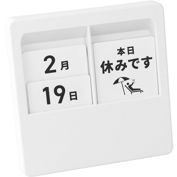 買い替え不要のパネル式万年カレンダーどんな空間にも馴染む3色展開ブラック/ホワイト/アイボリーを採用卓上で邪魔にならないコンパクトサイズ10cm×10cmの手のひらサイズです。3通りから選べる設置方法卓上置き、マグネット、吊り下げの3種類の設置方法が可能です。全12種の伝言メッセージパネル
