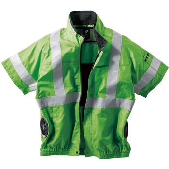 JIS T-8127 高視認性安全服 Class2(オレンジのみ)を取得した半袖ジャンパーです。前後および腕部に反射テープを施すことで、視認性をさらに高めています。また、暑さ対策としてサイドファン仕様を採用し、保冷剤ポケットも装備しています。