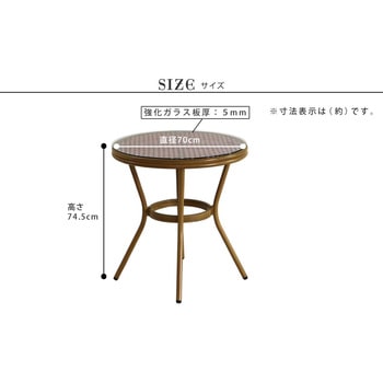 テラステーブル ガラス天板 カフェテーブル 高さ70cm