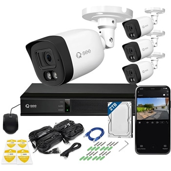 カメラを最大8台まで接続できるNVR(録画機)と、夜間もカラー撮影が可能なカメラのセット商品です。