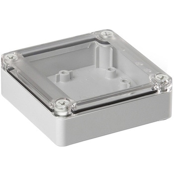 色【トップカバー】透明、【ボディー、カバースクリュー】ホワイトグレー、【ガスケット】ブラック取付ラッチ・ヒンジ取付×寸法a(mm)10寸法b(mm)20.5寸法c(mm)24材質【トップカバー】ポリカーボネート(UL94V-2)、【ボディー】グラスファイバー入りポリカーボネート(UL94V-0)、【ガスケット】ポリウレタン、【カバースクリュー】ポリアミド、【取付ベース用ビス(タッピングビス)】鉄タイプTタイプ温度範囲(℃)-20~+75表面処理取付ベース用ビス(タッピングビス):ユニクロメッキ外形寸法D(mm)100外形寸法W(mm)100外形寸法H(mm)35保護等級IP66/67締付トルク(N・m)カバー:1~1.5材質(カバー)難燃性ABS樹脂(UL94V-0 主成分)材質(ガスケット)ポリウレタン材質(ボディ)グラスファイバー入りポリカーボネート(UL94V-0)色(カバー)トップ:透明対応ボディー色ホワイトグレーRoHS指令(10物質対応)対応特性防水・防塵自重(g)124締付トルク(N・m[kgf・cm])1~1.5[10~15]有効寸法(幅)(mm)90.5(内部)有効寸法(奥行)(mm)66(内部)有効寸法(高さ)(mm)20.5(内部)
