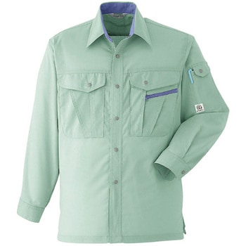 綿・ポリ混紡のベストセラーモデル。生地に帯電防止素材を採用し、空気漏れを少なくするために、糸の織り密度を上げた、綿・ポリエステルの高密度ブロード生地を採用。高密度ブロードにより、洗濯耐久性、イージーケア性を高めています。全関東電気工事協会推奨認定品。