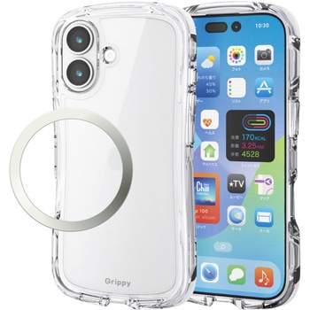 iPhone17 ケース ハイブリッド 衝撃吸収 磁気吸着対応メタルステッカー付 Grippyエレコム