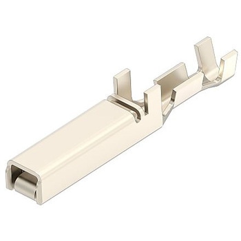 仕様シリーズ = FASTON .110絶縁 = 非絶縁最小ワイヤサイズmm2 = 0.5mm2最大ワイヤサイズmm2 = 1.5mm2最小ワイヤサイズAWG = 20AWG最大ワイヤサイズAWG = 15AWGタブサイズ = 2.79 x 0.5mm長さ = 13.4mmコンタクトめっき = 錫コンタクト材質 = 真鍮TE Connectivity FASTON 110シリーズ圧着レセプタクル. 迅速な取り付けと一様な信頼性を誇るFASTON 110シリーズクイック接続圧着レセプタクル端子です。広範囲にわたる産業分野での経験により、この圧着方式は、電気的 / 機械的に安定した性能を確保するのに最も有効であることが立証されています。このFASTON 110レセプタクル端子は、絶縁材の厚さを補うステップダウン絶縁サポートバレルを備えています。このFASTON 110レセプタクルの背面にあるテーパー壁は、座なしタブの過挿入を防止します。各FASTON端子は、圧着仕様が正確に管理されているので、すべてのコネクタが仕様通りに機能します。機械的強度と導電性の最適な組み合わせを実現するために、別売りの専用圧着工具を使用してください。「F」型圧着終端処理により、回路の寿命が終わるまで精確な伸張強度と導電性が確保されます。この終端処理方法は、振動及び腐食に対する最大の耐久性も提供します。. 特長と利点. 正しい工具を使用して素早く導体に取り付け可能 一様な信頼性が得られるように正確に調整された圧着仕様 電気的 / 機械的に安定した性能 正確な伸張強度及び導電性 振動及び腐食に最大限の耐久性. 用途. FASTON 110圧着レセプタクルは、一般に家電業界や自動車産業で使用されます。その他の用途には、コンピュータや周辺機器、産業用コントローラ、テスト装置、通信機器などがあります。RoHS指令(10物質対応)対応